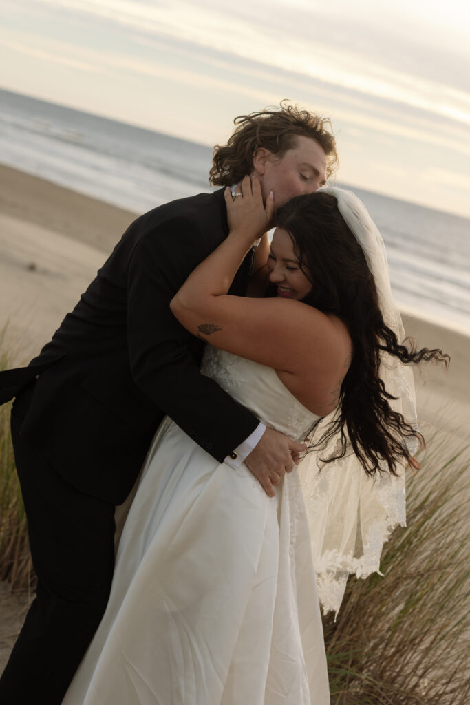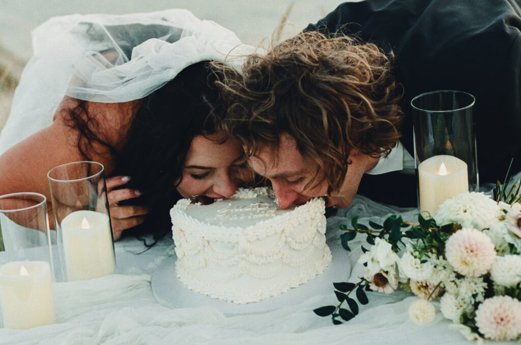 Recently, a beautiful couple celebrated their love in the sand dunes, saying their vows surrounded by the natural beauty of the beach. After the ceremony, they enjoyed cake and ran around the beach, carefree and full of joy.